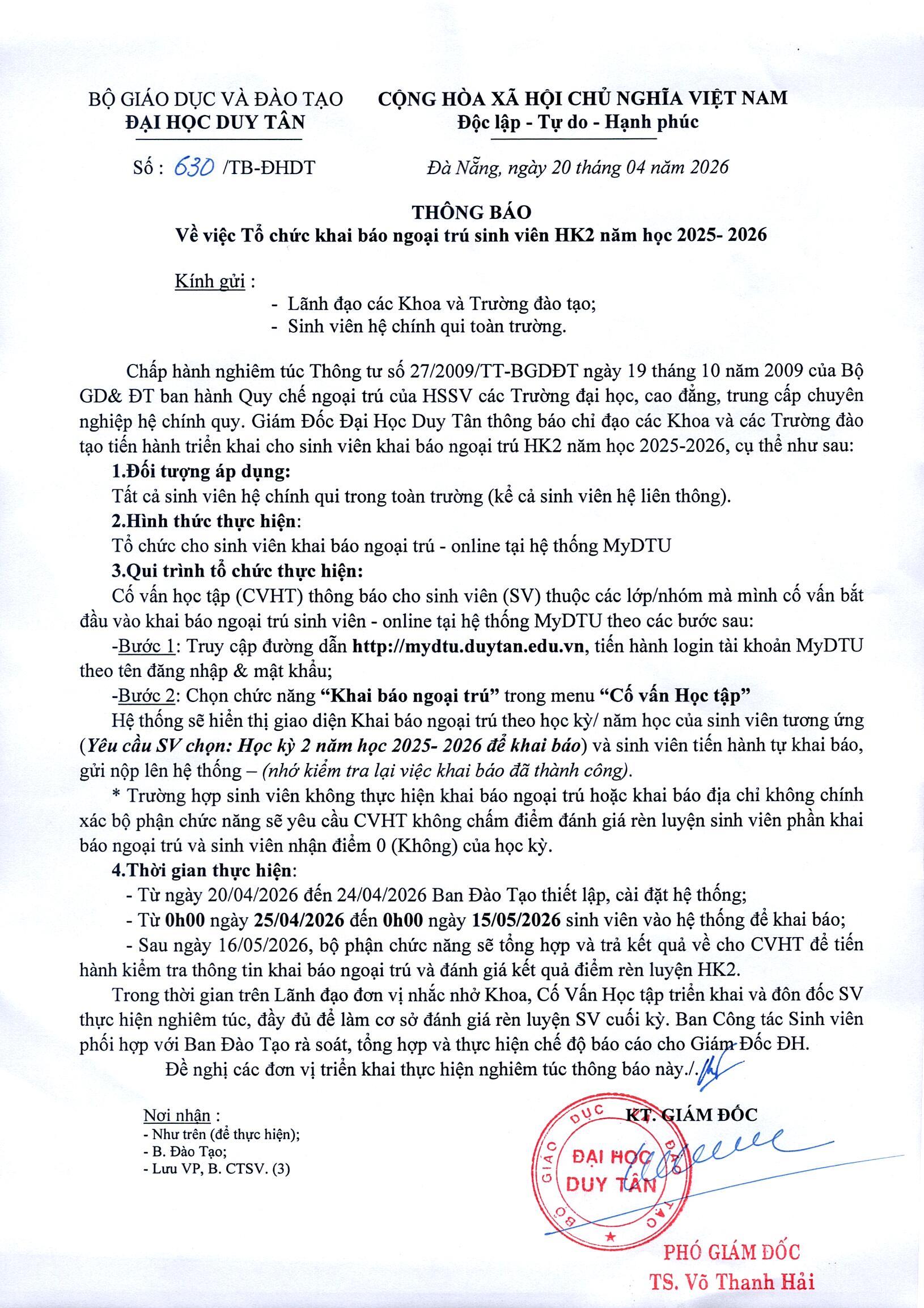 - KẾ HOẠCH ĐẢM BẢO AN NINH TRẬT TỰ TẠI ĐẠI HỌC DUY TÂN NĂM 2026